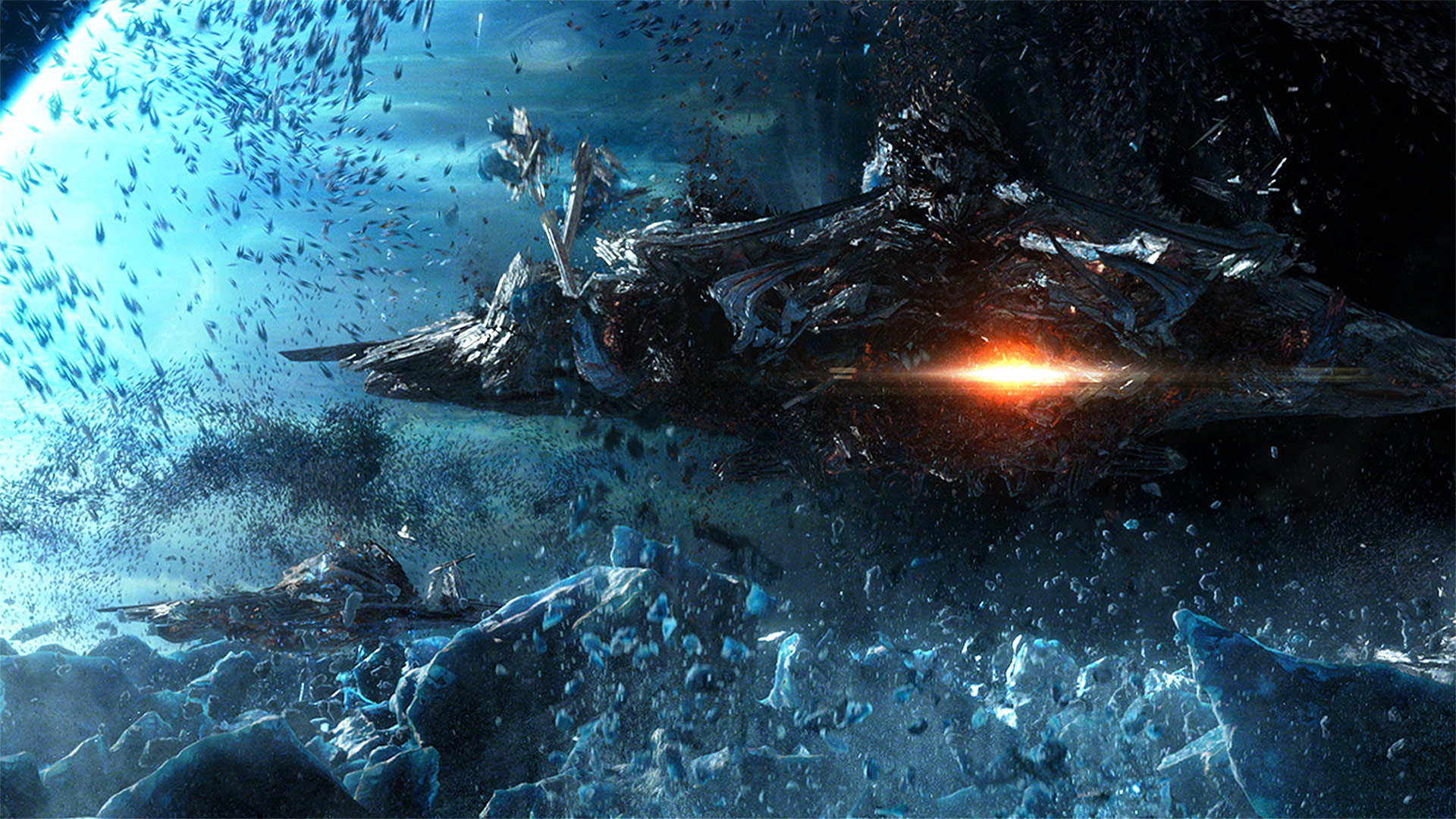 A Formic ship being destroyed while harvesting water.
