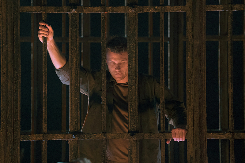 Sam tells Lucifer that he won't say yes to Lucifer possessing him. Lucifer deactivates the wards and extinguishes the Holy Fire around the cage. Rowena tells Crowley to follow him. Meanwhile, Lucifer teleports Sam into the cell and advances on him. Sam calms himself and says that it's how God told him it would be. He figures that he just has to go with it, and Lucifer explains that when the Darkness descended, the cage was damaged. Reaching out through the fissures, Lucifer made contact with Sam and gave him the visions. Lucifer reveals that God was never with Sam. A single tear rolls down Sam's cheek when Lucifer says that he is Sam's only hope.